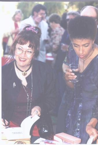 The book launch of 'Shadow's Embrace'. Astrid signing a copy of the book for a guest. The launch was held at the historic home 'Grange' - at Grange, South Australia.