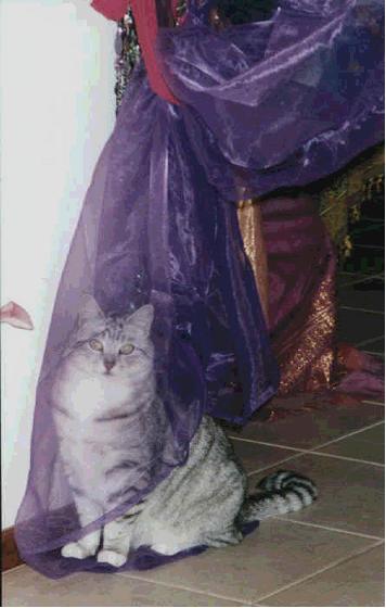 A rare photo of the elusive 'Senna' in her pose as Cata-Hari. Senna was rescued as a 3 week old kitten and came to Astrid at the time of the publication of her vampire-romance, 'Shadow's Embrace'. Senna means 'shadow' in Serbian. (Astrid has English language tutored migrant Serbian refugees).